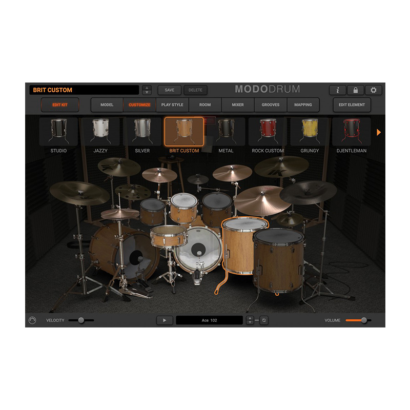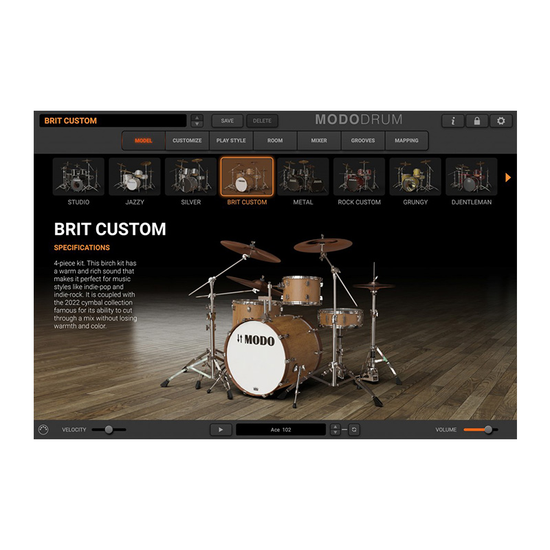 درون MODO DRUM مجموعهای کامل از کیتهای درام با مدلسازی عمیق قرار دارد که طیف گستردهای از سبکها را پوشش میدهد: از راک و پاپ گرفته تا جَز، متال، فانک، ستهای هیبرید الکترونیک و کیتهای خاص و خلاقانه. تقریباً هر جزئی از کیت قابل ویرایش است؛ از اندازه و ابعاد پوستهها، جنس بدنه و مواد ساز، میزان دمپینگ و کنترل رزونانس، کوک هر درام، نوع بیتر و نحوهی ضربه، محل برخورد استیک روی پوست، تا تنظیمات مربوط به میکروفنهای اورهد، روم و سایر جزئیات صدابرداری.