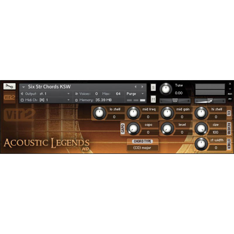 به جرات می توان گفت یکی از بهترین بانک صداهای موجود برای ساز محبوب گیتار آکوستیک در دنیا که شما را شگفت زده خواهد کرد. Acoustic Legend HD شما را به صورت کاملا حرفه ای از صداهای گیتار آکوستیک و تکنیک های نوازندگی پشتیبانی می کند . در واقع با کمترین هزینه گرانترین ساز ها از شرکت های پر آوازه ای همچون McPherson Taylor , Gibson , Martin استفاده می کنید.